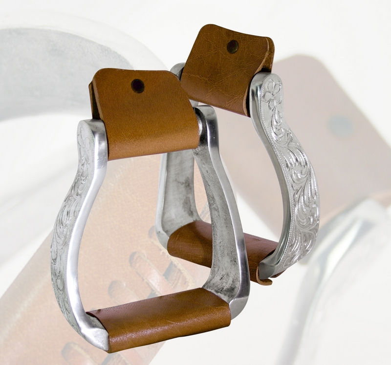 Staffe Western in alluminio pedane rivestite in cuoio decorate