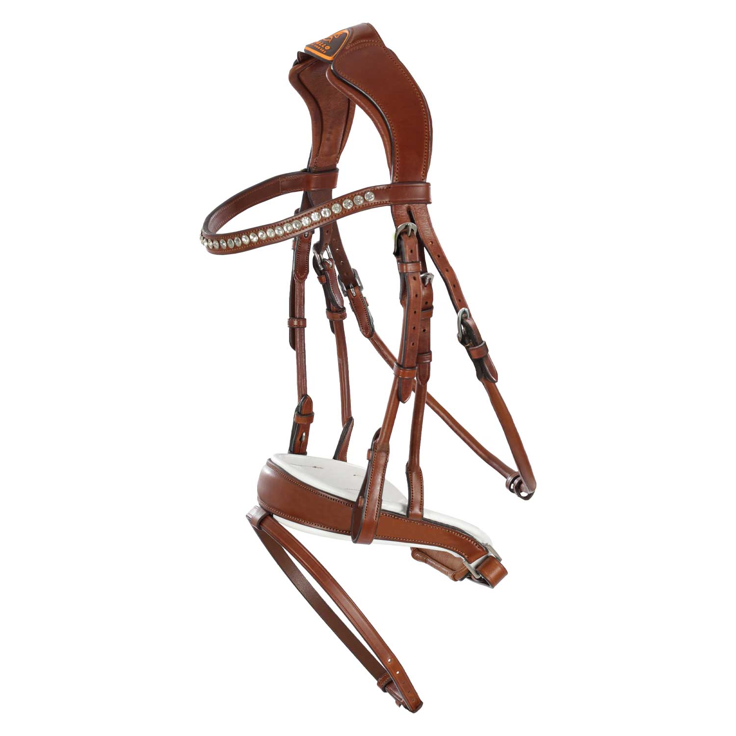 Testiera Acavallo Fornarina in pelle laminata con regolazione del sondaggio con il cursore in metallo Acavalloยฎ.