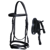 Testiera basica in cuoio con cavezzina doppia, redini in gomma. Disponibile nei colori nero e marrone e nelle misure shetland, pony, cob e full.